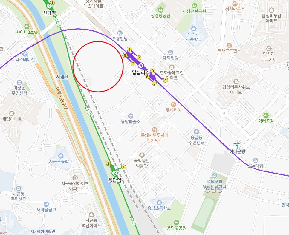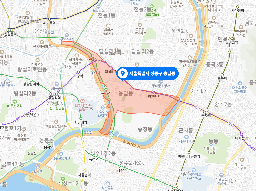 용답역 주변만 다녀와서 그쪽만 용답동인줄 알았는데 장한평역과 신답역까지 용답동이었다. 그렇게 주목을 받는 입지는 아니었는데 용답역은 성수역까지 지하철로 단 한 정거장 거리이다. 왕십리역도 바로 갈 수는 없지만 가까운 곳에 있다. 용답역 왼쪽으로 한양대와 한양여대가 있어서 그런지 용답역에서 대학생처럼 보이는 학생들도 많이 내렸다.
