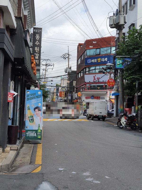 가게들이 많은 또 다른 도로로 왔다. 미용실이 있는 오래된 건물이 보여서 사진을 찍었는데 차가 와서 가렸다. 앞에서 언급했던 용답역 1번 출구부터 답십리역까지 가는 도로에서 일부를 로데오 거리라고 하는거 같기도 한데, 그 도로가 남북으로 가로지르는 도로라면 지금 사진을 올리는 곳은 동서로 가로지르는 도로이다.