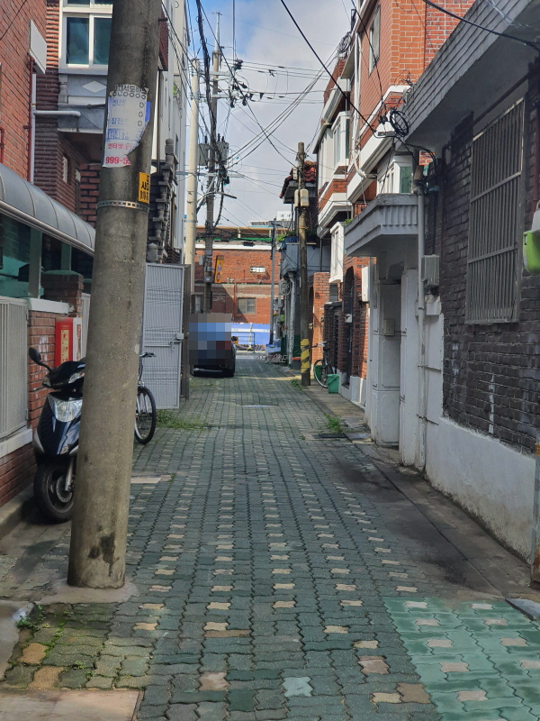차 한 대는 지나갈 수 있는 도로이지만 주차공간은 없어 보인다.