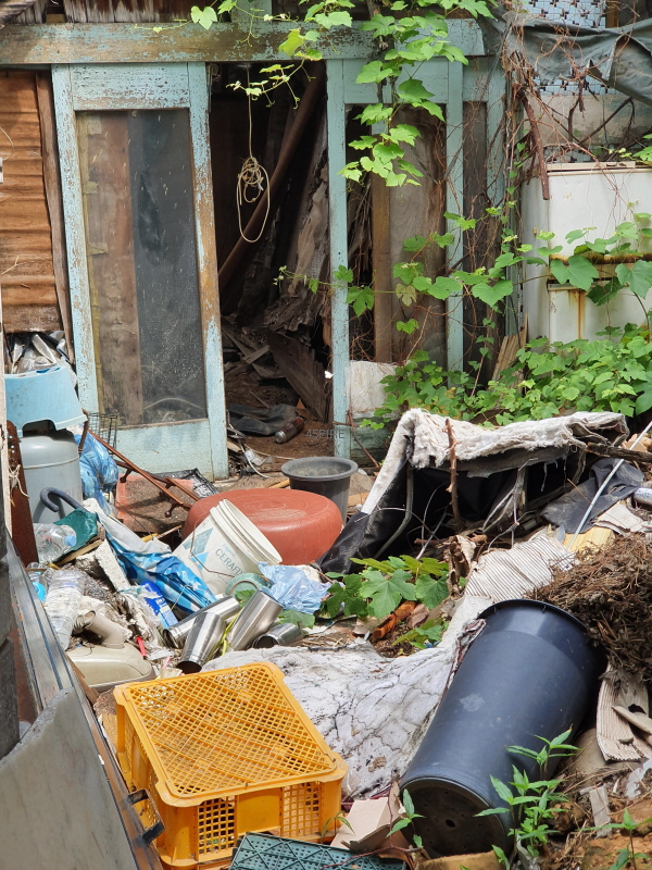 대문 안쪽을 보면 얼마나 관리가 안 됐는지 알 수 있다. 폐기물들이 잔뜩 쌓여 있었다.