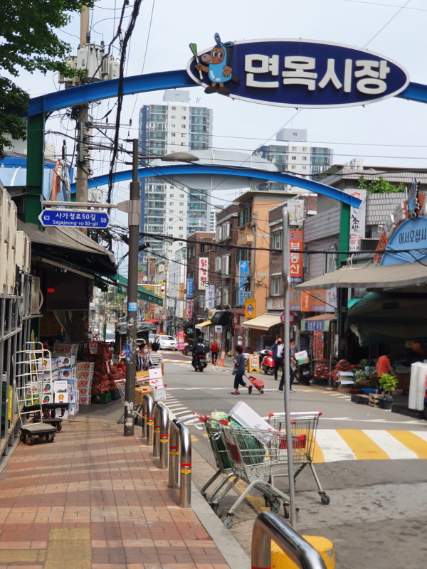 경매로 나온 단독주택은 면목시장 근처에 있다. 위 지도에서 오거리공원 위쪽으로 약간 색깔이 들어간 부분이 면목시장이었다. 면목시장 주변으로 노후된 주택들이 많이 보였다.