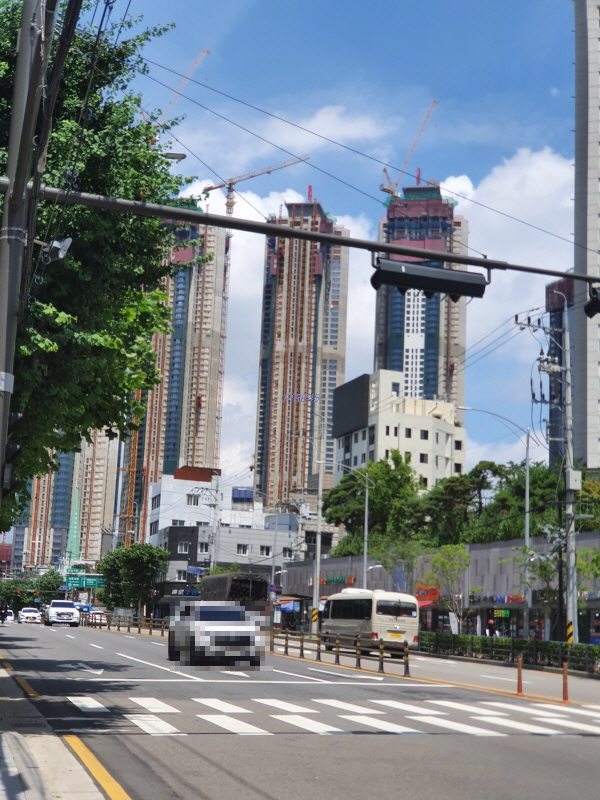 여기는 롯데캐슬 노블레스 앞이다. 도로변으로 쭉 이어진 아파트 단지 상가가 신기해서 찍으려고 했는데 제대로 못 담았다. 저 앞의 높은 건물은 그 유명한 청량리4구역이다. 스카이L65던가.