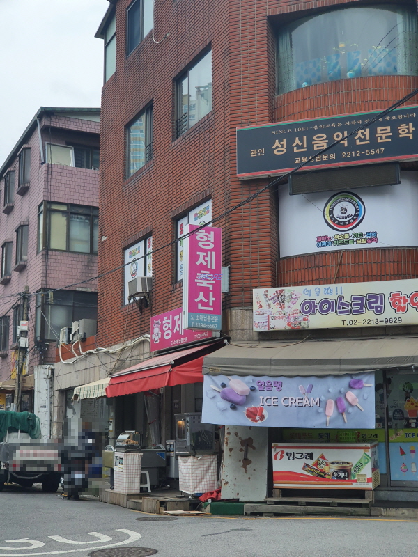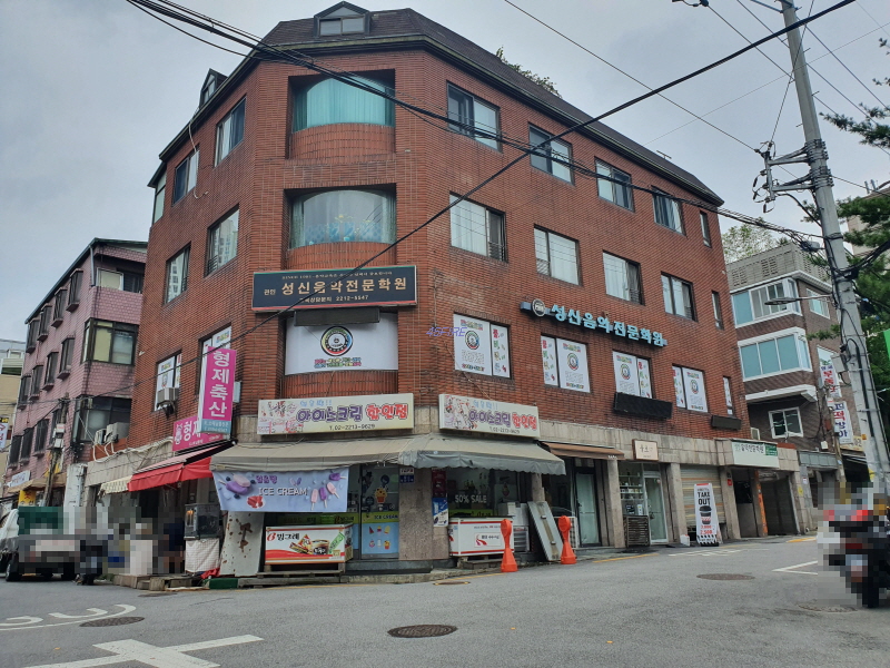 1990년 건물인데, 축산, 아이스크림 할인점, 카페, 학원 등 다양한 업종이 들어와 있다.