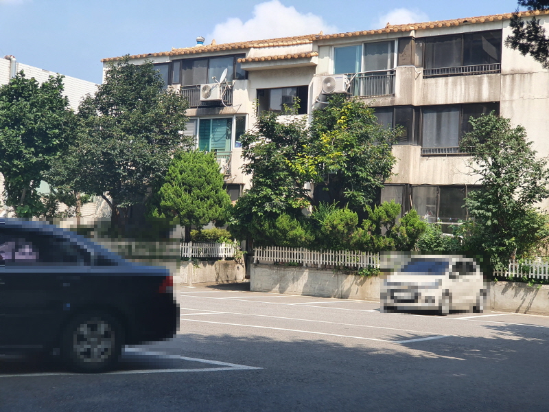 드디어 시원한 사진이다. 단지 입구에서 가까운 곳이다. 아까 안쪽에는 주차공간이 거의 없었는데 여기는 넓은 편이다.