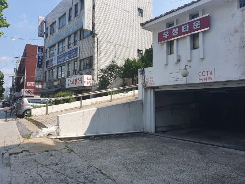 여기는 지하주차장 입구이다. 우성타운 아파트에는 이렇게 지하주차장도 있었다. 안쪽까지 안 들어가봐서 몇 대나 주차할 공간이 있는지 모르겠다.