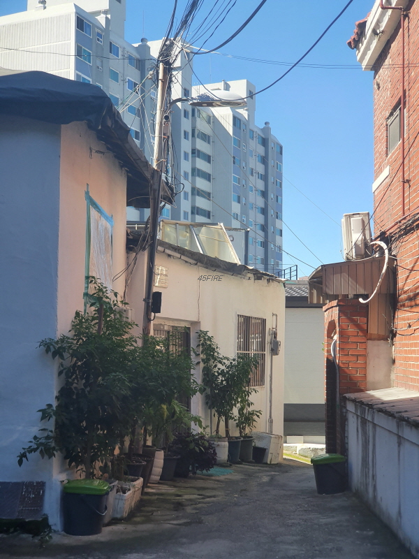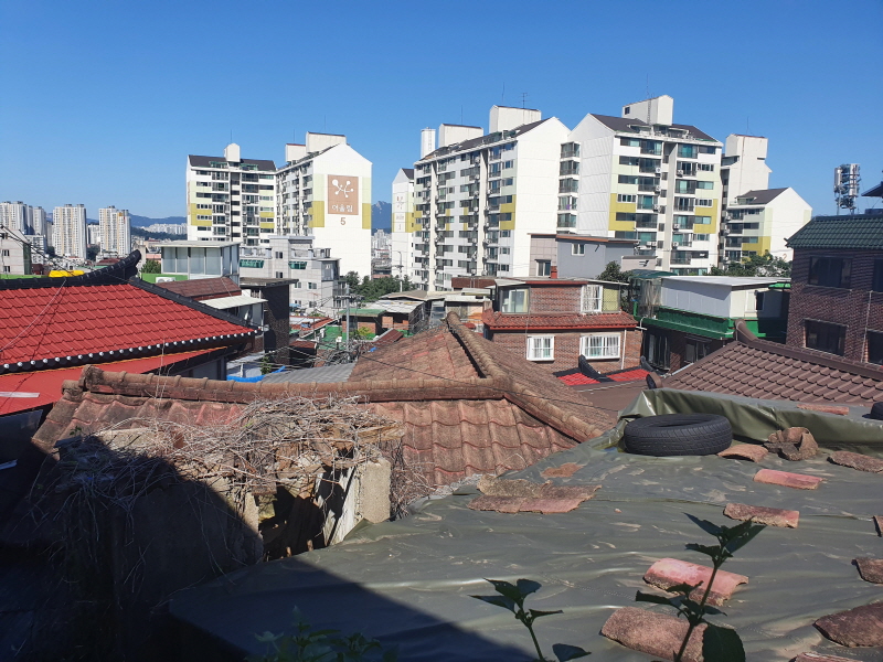 노후 주거지 멀리로는 아파트가 보였다.