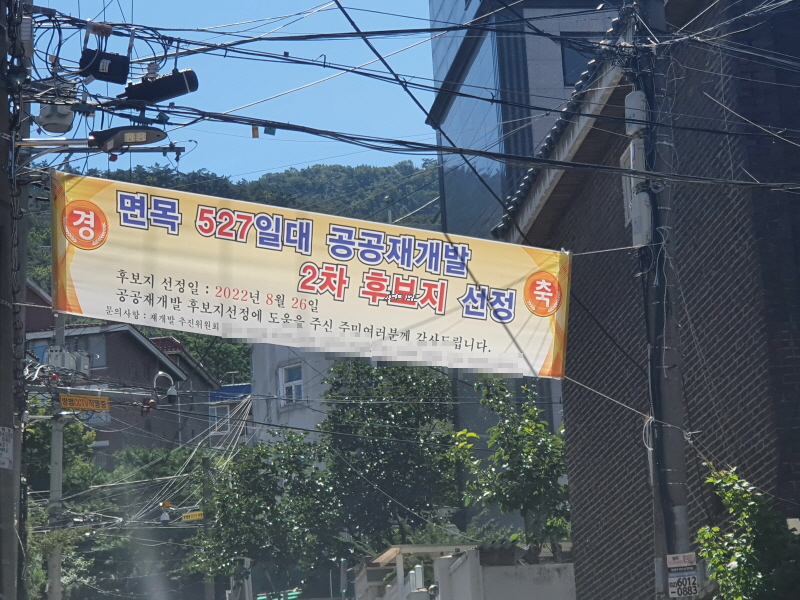 공공재개발 2차 후보지 선정을 축하하는 현수막이었다.