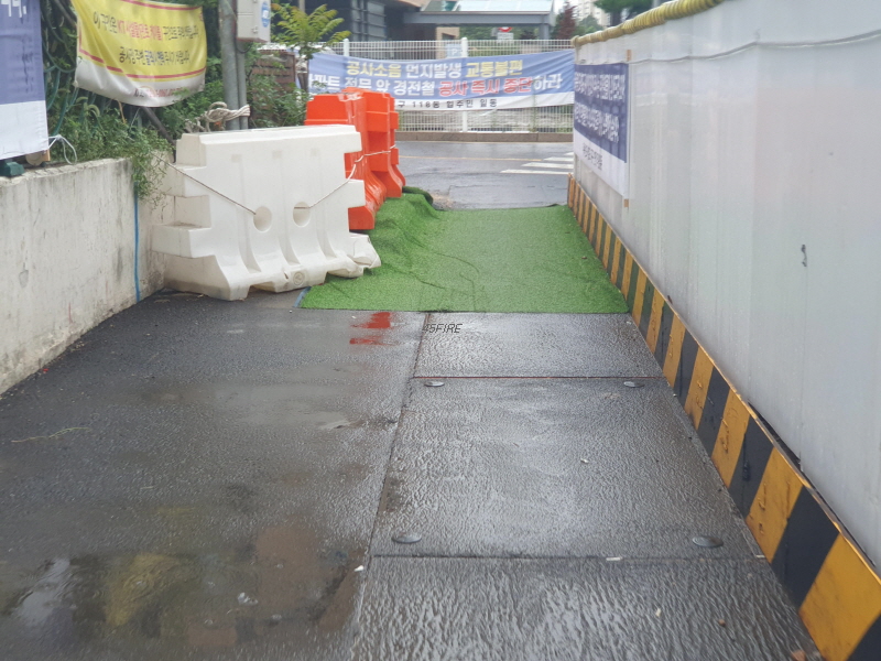 이쪽이 메인 입구인지 주차 차단기 및 경비실이 있었다. 뒤쪽으로 하계6단지 장미아파트가 보인다.