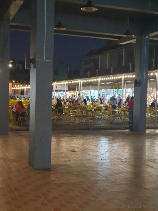 이런 공간에 테이블 등이 잔뜩 있고 주변에 있는 가게에서 음식을 사다가 먹는 방식이었다. 태국식 샤브샤브라고 할 수 있는 찜쭘 외에 팟타이, 볶음밥, 튀김, 주스 등 다른 음식들도 있었다. 술을 파는 곳도 하나 따로 있고 한쪽에서는 라이브 공연을 했다. 위 사진을 찍었을 때가 저녁 6시 반 정도였다. 시간이 흐를수록 빈자리가 없어지니 적어도 7시 이전에 가는 것을 추천한다.