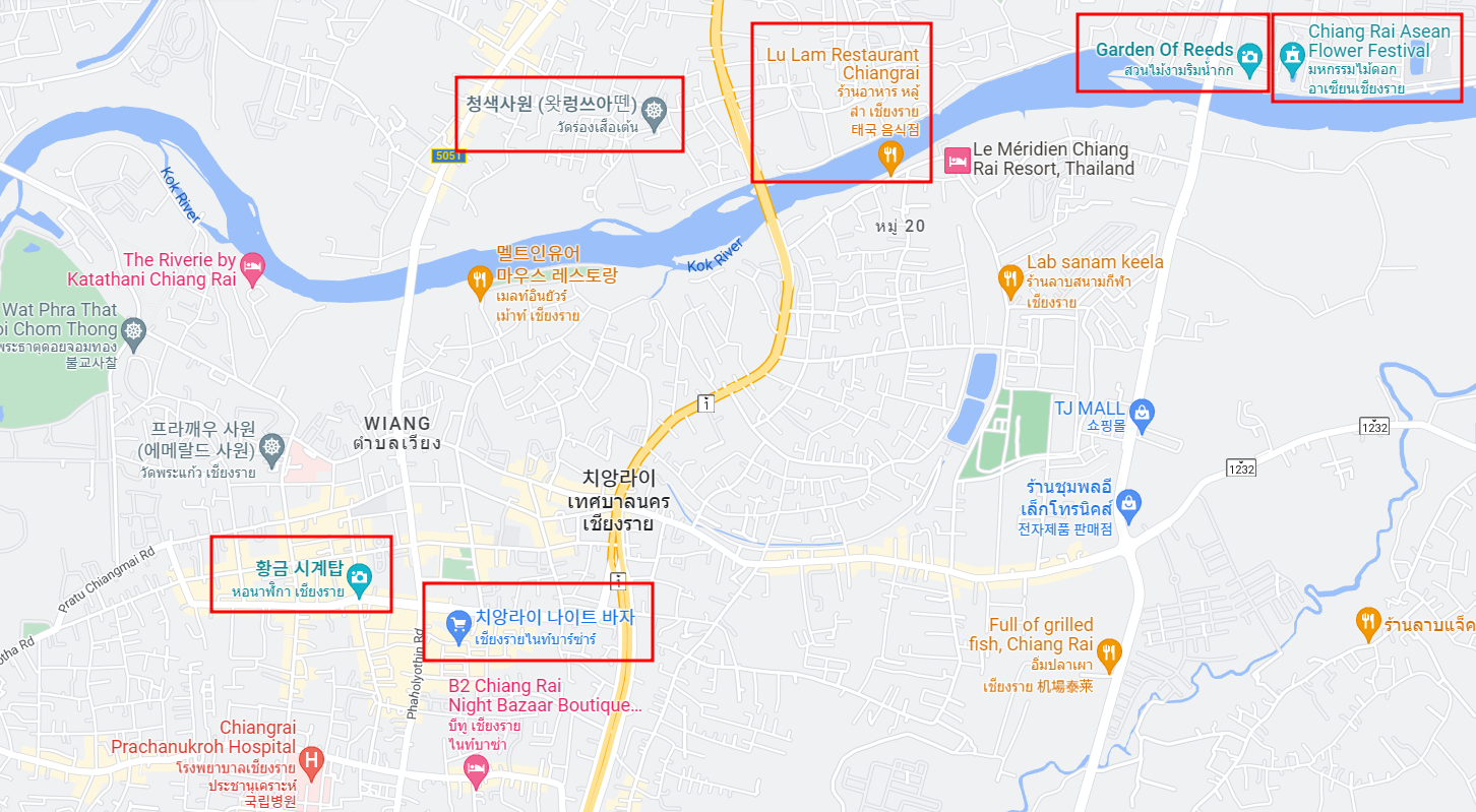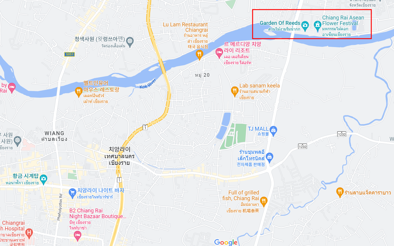 지도에는 치앙라이 아세안 플라워 페스티벌이라고 나오는데 축제 이름은 치앙라이 플라워 앤드 아트 페스티벌이다.