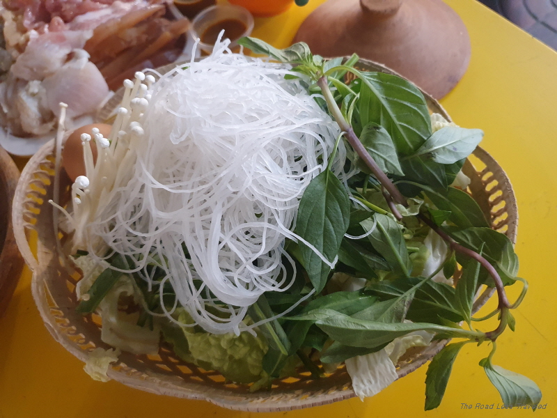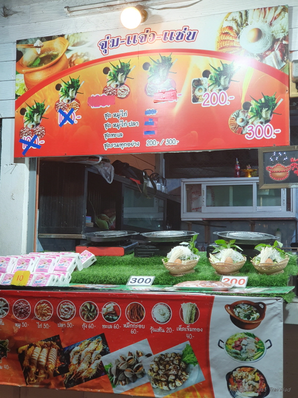 마음에 드는 가게에서 주문을 하면 이렇게 숯불에 올려진 토기 그릇을 가져다 준다. 육수는 매운맛, 안 매운맛 등을 선택할 수 있었다. 치앙라이 나이트 바자의 찜쭘은 선불인지, 후불인지 궁금했는데 선불에 가까웠다. 술이나 음료, 튀김 등은 확실히 선불인데, 찜쭘은 일단 고르고 테이블에 앉으면 테이블로 갖다주고 그때 돈을 받아갔다.