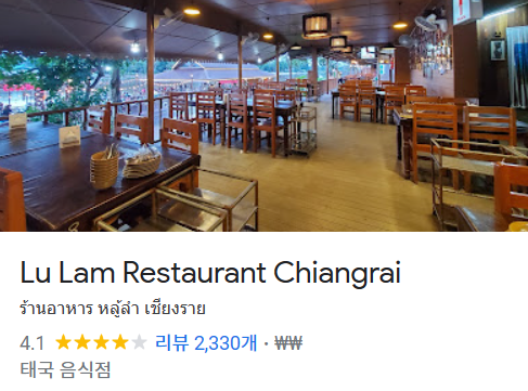 루람 인근에 청색사원과 치앙라이 아세안 플라워 페스티벌 등이 있으니 함께 방문하기 좋다. 태국 사람들도 많이 찾는다고 봤는데, 가격은 일반 식당에 비해 비싼 편이었다.