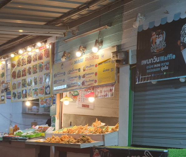 치앙라이 나이트 바자에서 튀김을 파는 가게 사진이다.