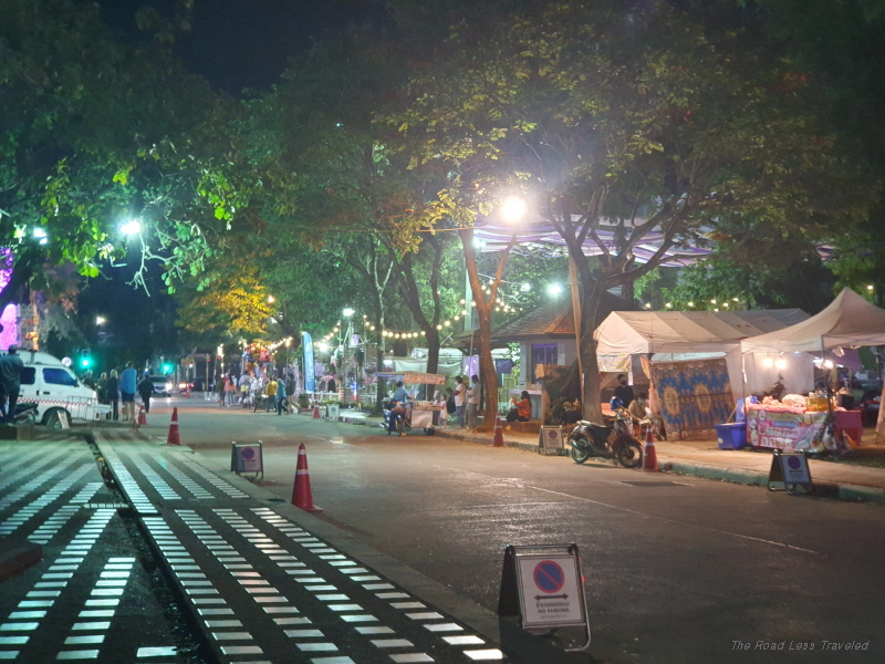 치앙라이 나이트 바자는 치앙라이 버스터미널에서 빠른 길로 가면 3분도 안 걸린다. 치앙라이에서 치앙마이로 가는 가장 늦은 버스가 17시 45분이니 치앙라이 나이트 바자를 제대로 즐기려면 치앙라이에서 1박을 하는 수 밖에 없다. 4~5시쯤 나이트 바자에 갔을 때도 찜쭘을 파는 가게가 하나 정도는 열었지만 분위기를 제대로 느끼기 위해선 저녁 때 가야한다.