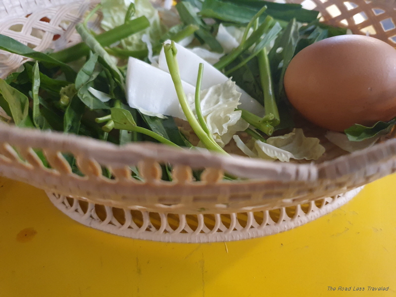 야채 한 바구니와 고기 및 해산물 모음을 합쳐서 200바트였다. 300바트 짜리도 있었다.