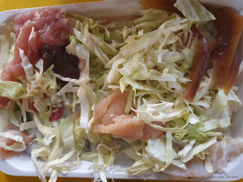 전부 고기와 해산물은 아니었고 바닥에는 양배추가 깔려있었다.