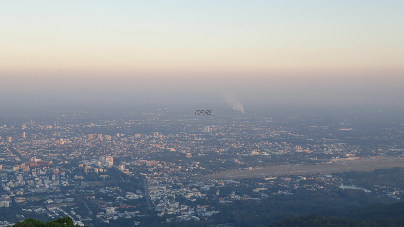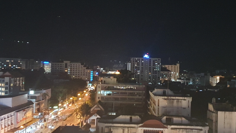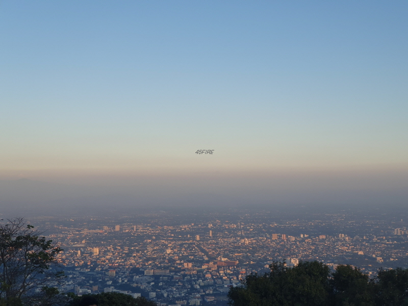 저 뒤쪽으로 띄엄 띄엄 불빛이 보이는 곳이 도이수텝 사원일까...