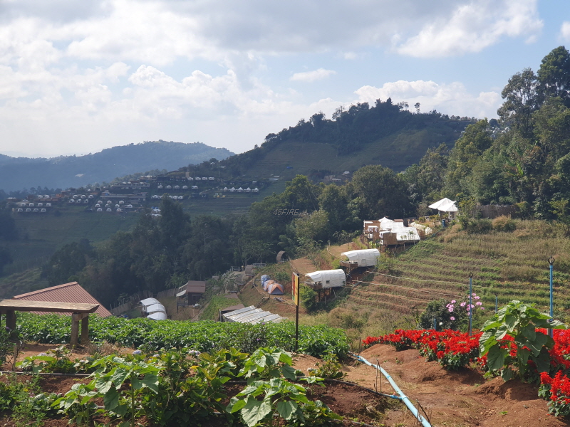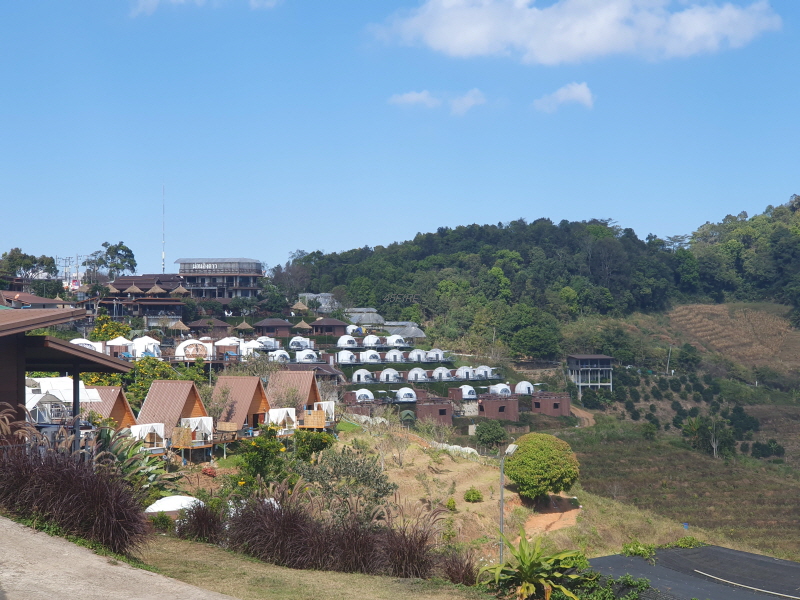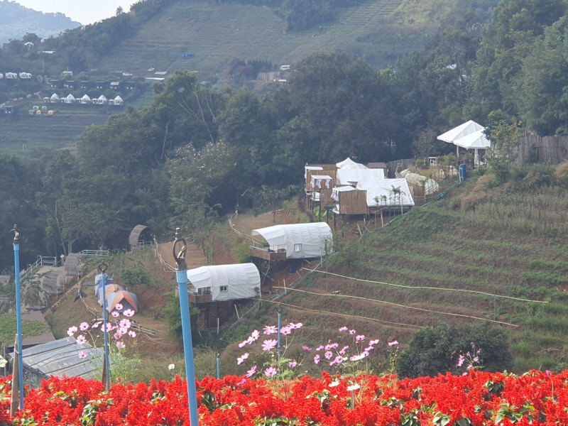 몬쨈이 마음에 들었던 이유가 바로 이런 모습이었다. 산비탈을 따라 글램핑을 할 수 있는 텐트 비슷한 것들이 많이 있었다. 시간상 1박을 하지 못해서 아쉬웠다.