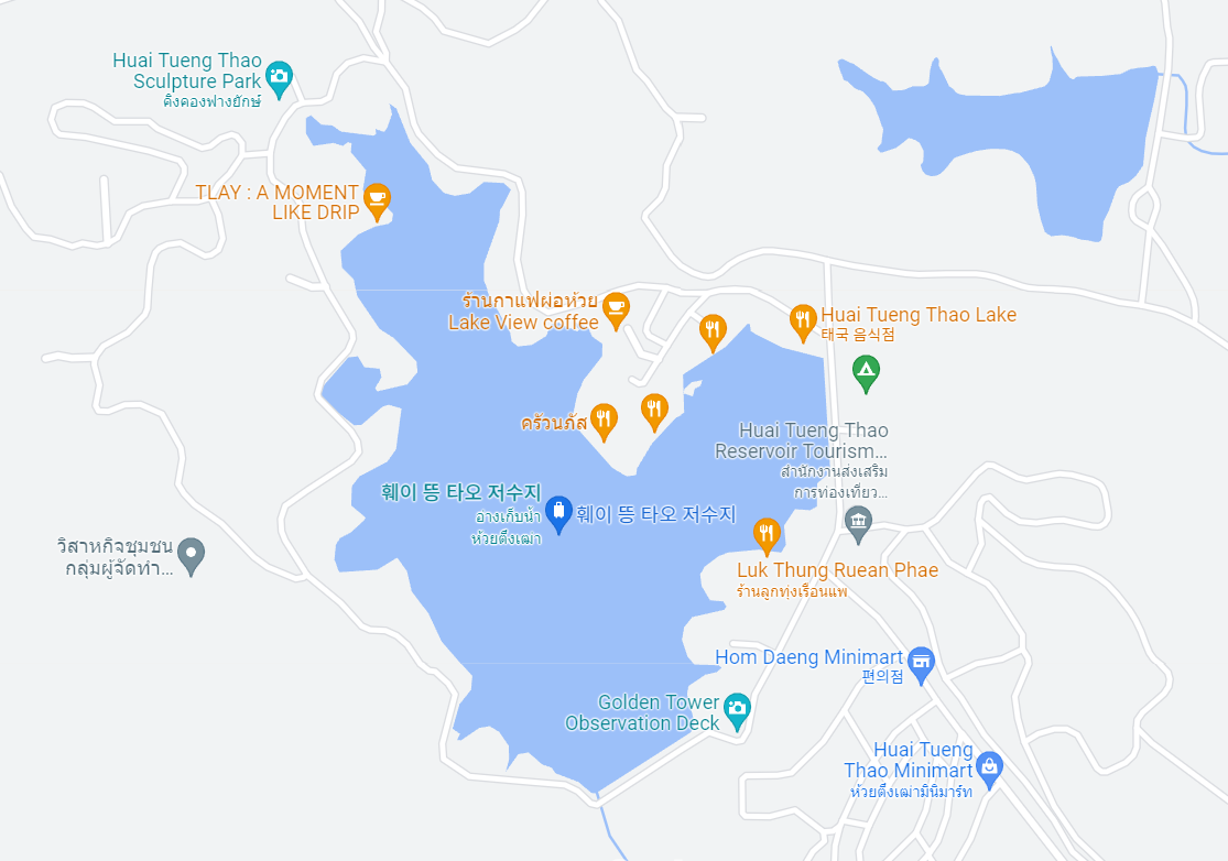 훼이통타오 호수는 몬쨈으로 가는 길에 들른 곳이다. 구글 지도에는 훼이 뜽 타오 저수지라고 나온다. 보통 몬쨈 투어에서 가장 먼저 방문하는 곳이다. 훼이통타오 호수에서 킹콩 랜드, 호수 뷰 포인트 등을 간다. 여행사 투어에서도 한 시간 정도 시간이 주어진다.
