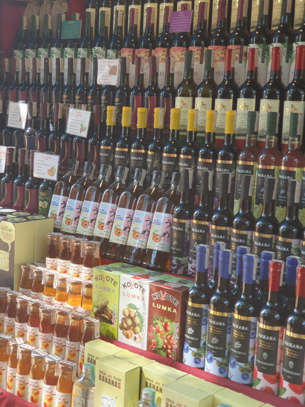 당시에는 그냥 사진만 찍고 자세히 안 봤는데 지금 보니까 과일주 같은 것을 종류별로 하나씩 못 사와서 아쉽다. 도이인타논에 갔을 때 몽족마켓에서 과일주, 와인 등을 180바트짜리, 380바트짜리 등 종류별로 네 병이나 샀기 때문에 더이상 살 수가 없었다. 도이인타논에 가는 길에 있던 몽족마켓보다 여기가 과일주 종류가 더 많은 것 같다.