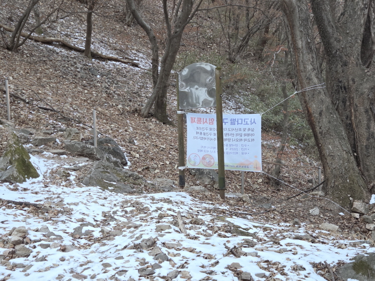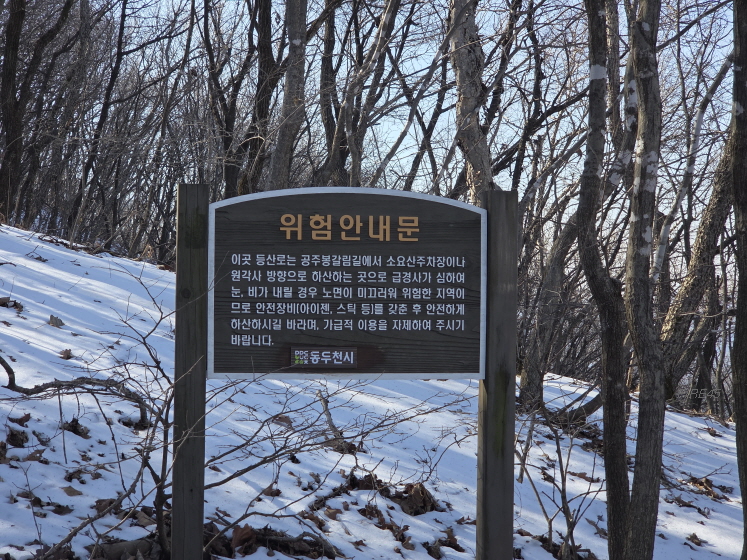 여기가 공주봉 코스 초입으로 내가 아이젠을 착용했던 곳이다. 여기서 아스팔트 길을 한참 내려가야 했지만 그래도 생각보다 일찍 내려왔다. 상백운대 등을 포함해서 타원 모양으로 한 바퀴 못 돌고 와서 아쉽다. 준비 없이 가서 그렇다. 2월에는 BAC100 중 어디를 갈지 고민이다. 가까운 감악산, 원래 가려고 했던 불암산과 수락산을 갈까.