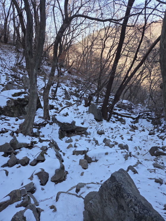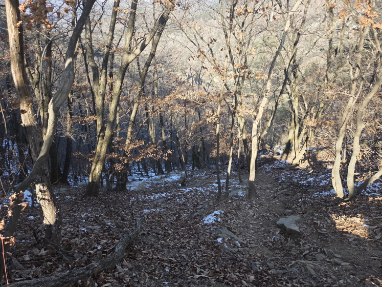 나는 아이젠도 착용했고, 스틱도 두 개 썼다. 한 가지 안 가져와서 아쉬운 물건은 선글라스였다. 올라가는 길에 해가 정면으로 비치고 눈까지 있었다. 사진은 일부러 자제했다. 지난 번에 도봉산에 갔다오면서 100장 넘게 찍었더니 편집해서 올리기도 힘들었고, 적당히 찍고 글 쓰는 시간도 줄이기로 했다.