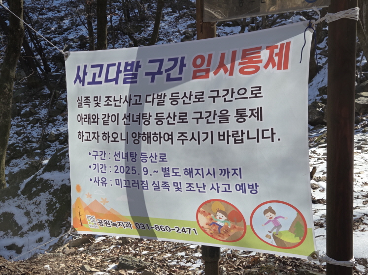 선녀탕 등산로가 어딘지 확실히 모르겠는데, 겨울 이전인 9월부터 통제 중이다.