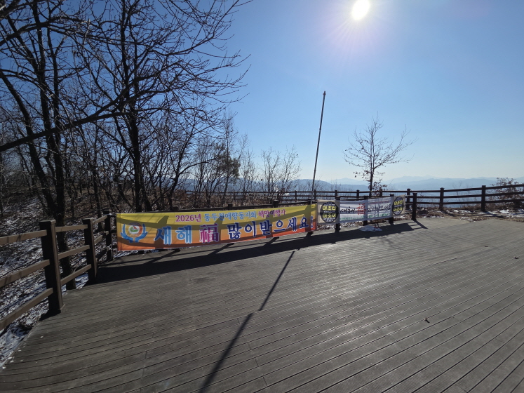 여기가 내가 내려온 길과 공주봉에서 내려오는 길이 만나는 지점이다. 내가 올라갈 때 그냥 지나친 곳. 앞에 있는 현수막 사진을 찍고 왼쪽으로 바로 올라갔던 것 같다.