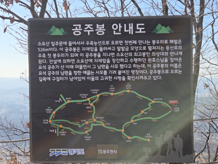 인증하면서 보니까 10km 떨어진 지점에 다른 인증지가 있는 것으로 나왔다. 집에 와서 확인해보니까 소요산에서 서쪽으로 10km 가량 떨어진 곳에 감악산이 있었다. 부지런히 서두른다면 1일 2산도 가능할 것 같았다.