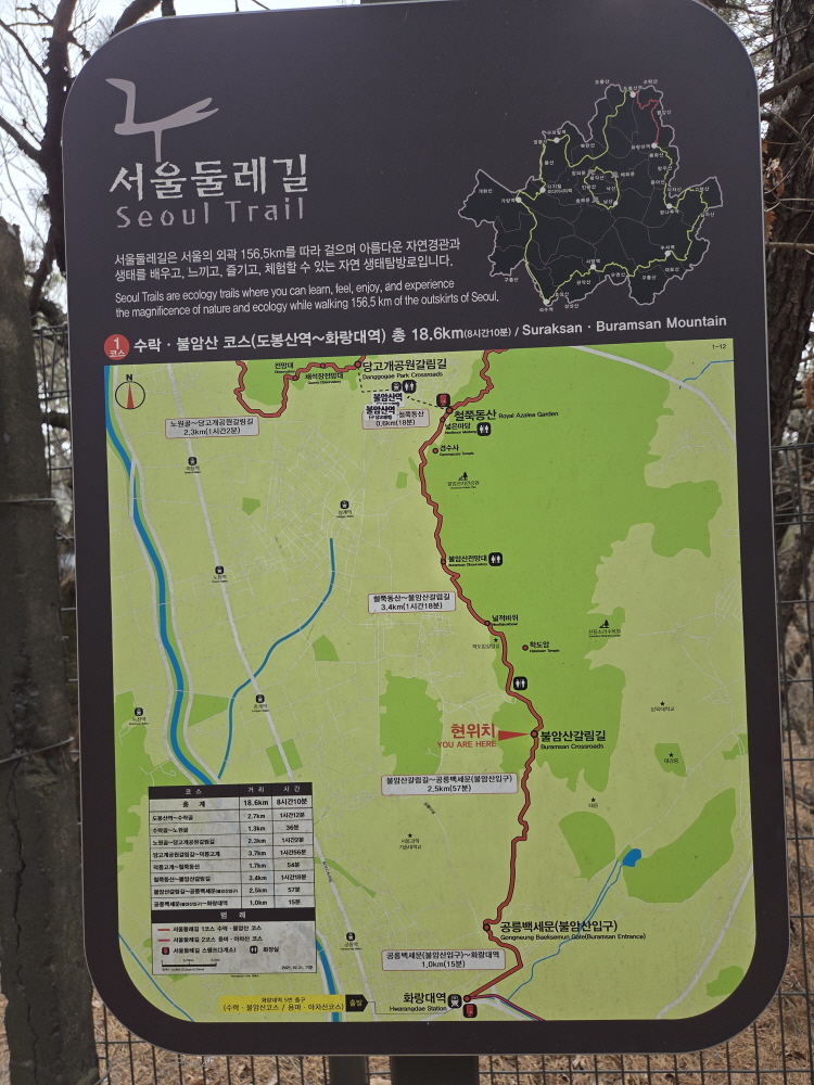 불암산 백세문은 6호선 화랑대역에서 더 가깝다. 그런데 나는 공릉역에서 20분 정도 걸었다. 6호선으로 갈아타는 데 더 시간이 걸릴 것 같았기 때문이다.