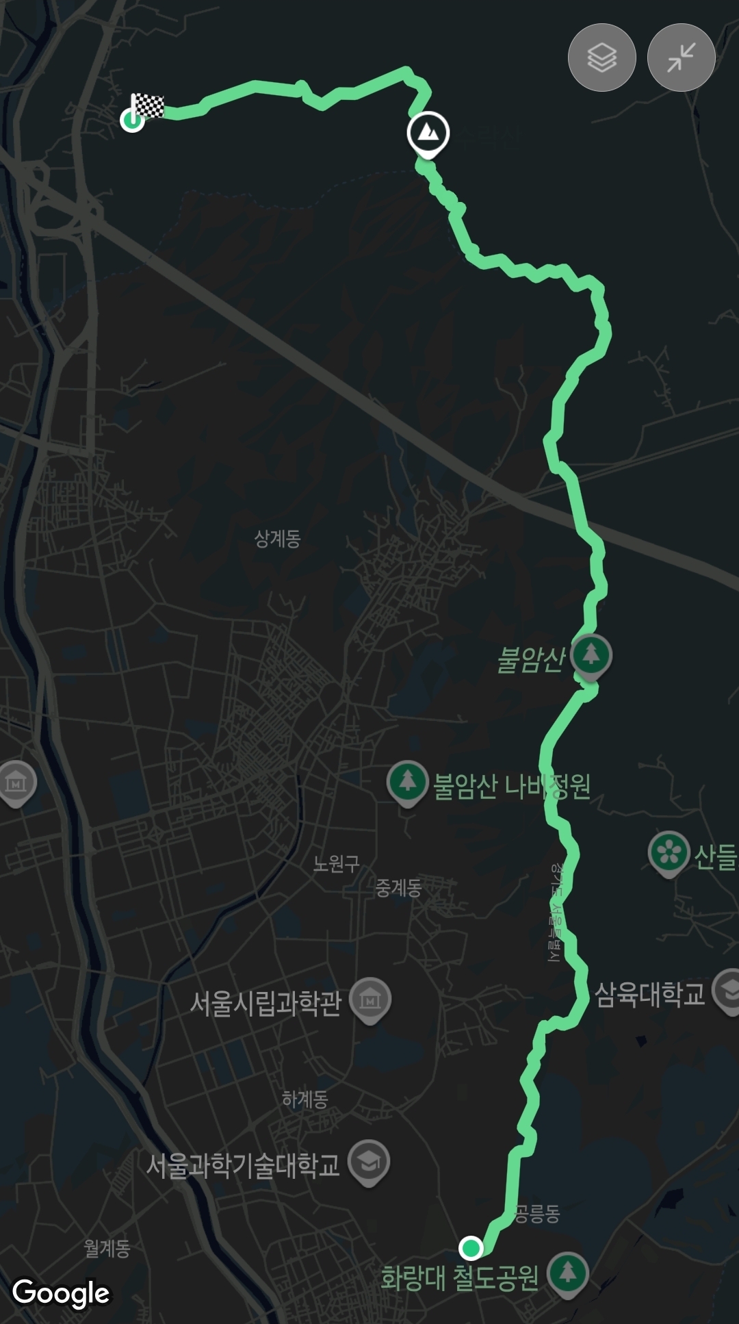 위 사진을 찍은 시간을 추적해보니까 출발 후 무려 1시간 10분이 지난 시점이었다. 불수사도북을 하는 유튜버들은 한 시간이면 불암산 정산에 가던데... 벌써 불암산 정상에 도착했어야 할 시간인데... 나의 현실을 깨닫는 순간이었다.