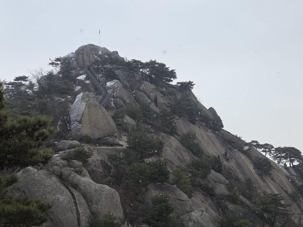 눈이 조금 쌓여서 저 위에는 안 올라가려다가 이왕 왔으니까 올라갔다.