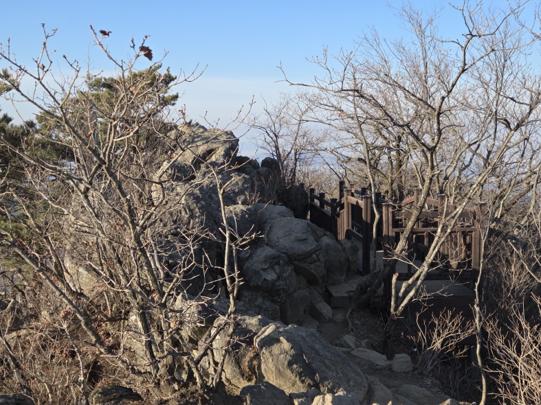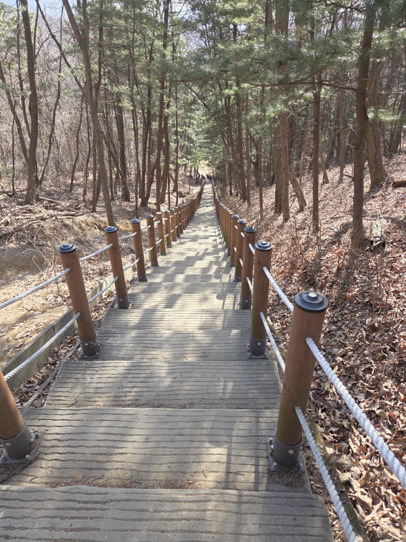 정상까지 이런 데크 계단이 3번 나오던가. 첫번째다. 최근의 블로그 글에서는 막혀있다고 봤는데 열려 있었다. 그래도 찝찝해서 계단으로 가지 않고 우회길로 갔다.