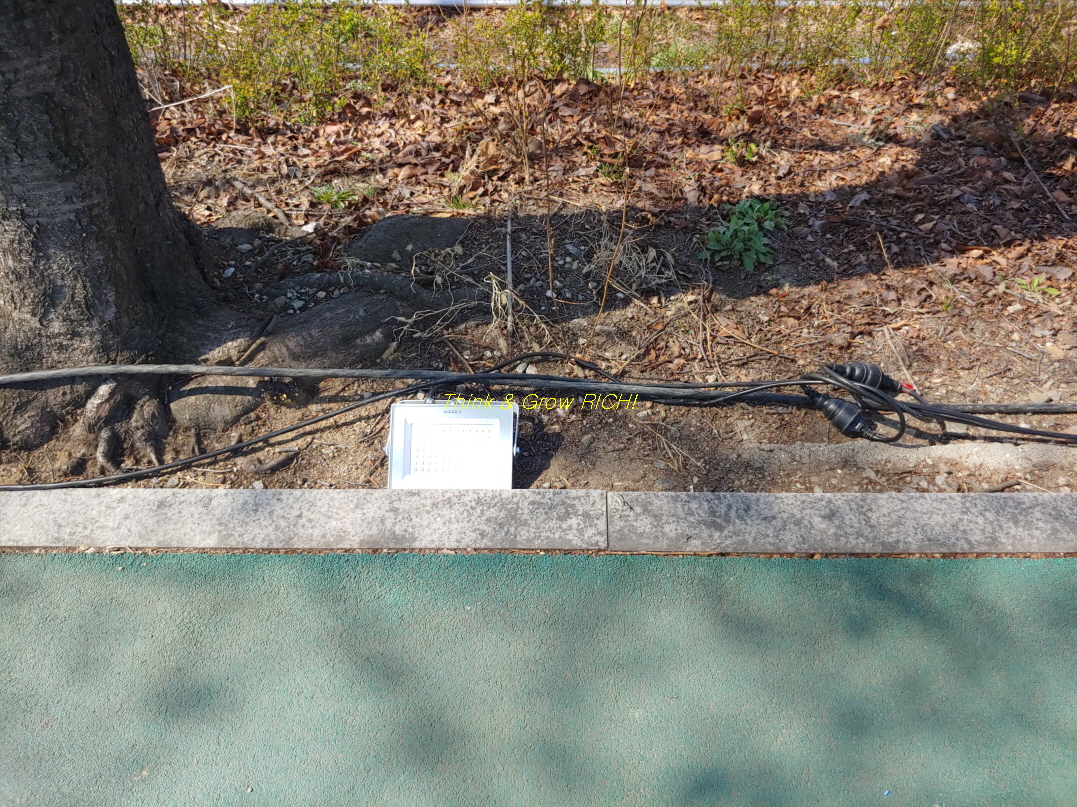 햇빛 때문에 잘 안 보이는데 조명등 같은 것이 길을 따라 쭉 설치되어 있었다.