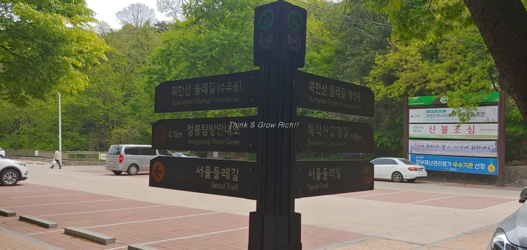 나는 잘 몰라서 솔샘역까지 걸었는데 북한산 둘레길 5구간 명상길 구간이 끝나는 곳이 '정릉 주차장'인가 그렇다.