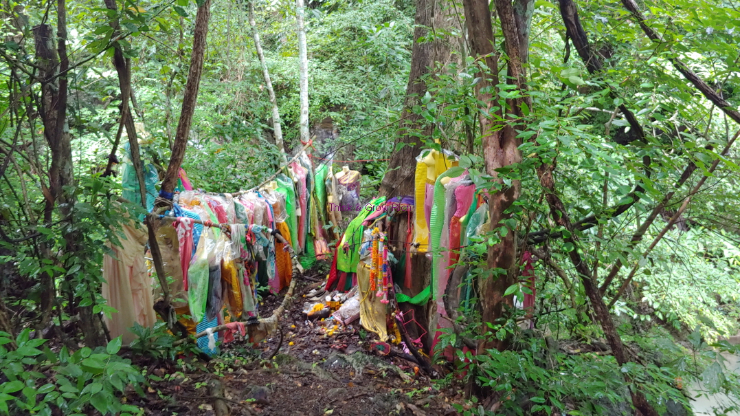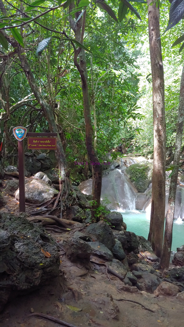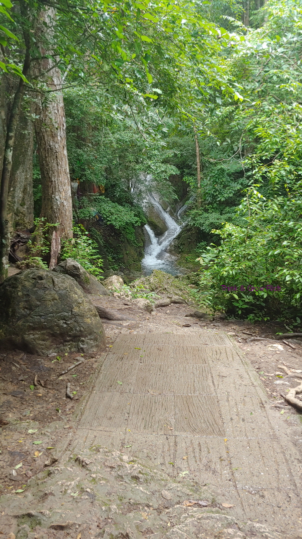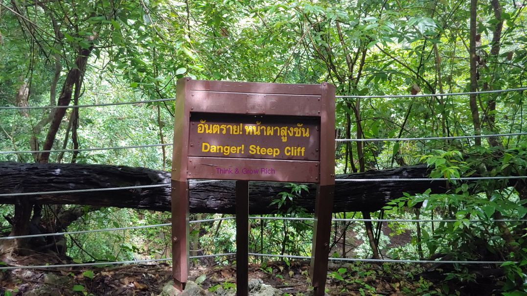 이 정도 아래쪽에는 구명조끼를 빌려주는 곳도 있었고 플라스틱 물병 등을 가지고 올라가려면 보증금을 내야 하는 검문소 비슷한 곳도 있었다. 그냥 지나가도 막 검사할 분위기는 아닌데 앞에서 가던 외국인들이 자발적으로 물병을 내밀어서 나도 물병을 보여줬다. 물병을 맡기는 줄 알았는데 물병을 맡기면 올라가면서 물을 마실 수 없으니, 장부에 이름과 금액을 적고 물병에 네임펜 같은 걸로 금액을 적어준다. 20밧이면 20밧. 그리고 내려올 때 빈 물병을 보여주면 20밧을 돌려준다. 생수통 들고 올라갔다가 버리고 오지 말라는 뜻.