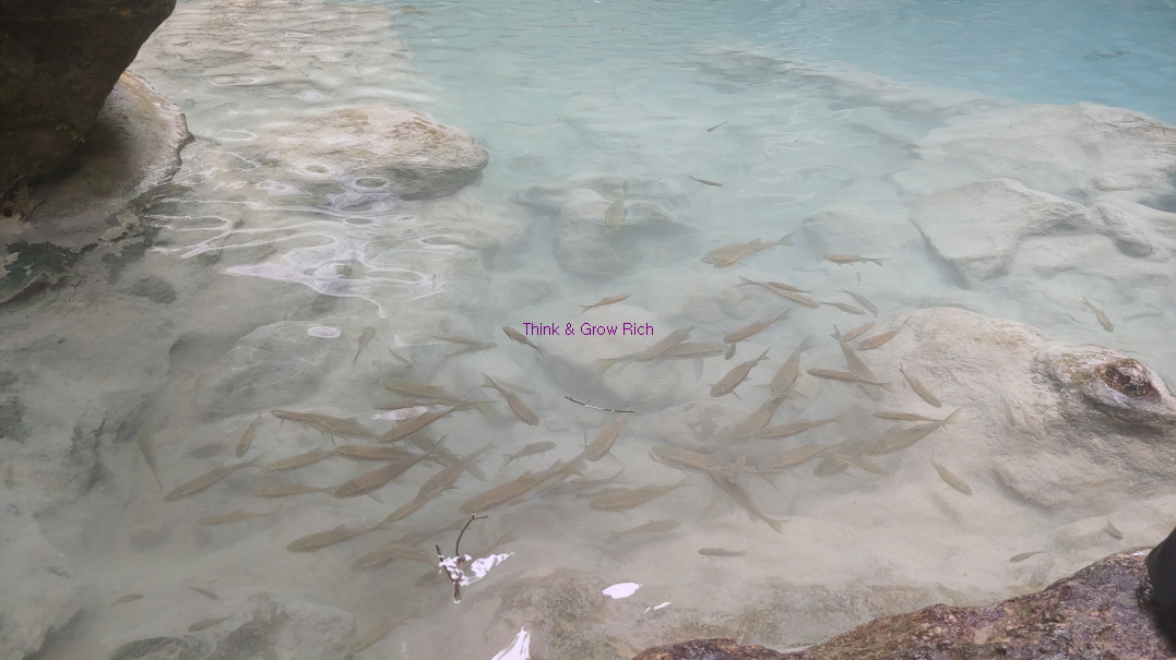 큰 물고기들은 거의 물지 않는데 작은 크기나 중간 크기는 엄청 달려들었다. 이상한 느낌에 버티기 힘들었다. 여기서 발만 담궜을 때도 그랬고 내려가면서 아래에서 물에 들어갔을 때도 물고기들이 달려들었다.