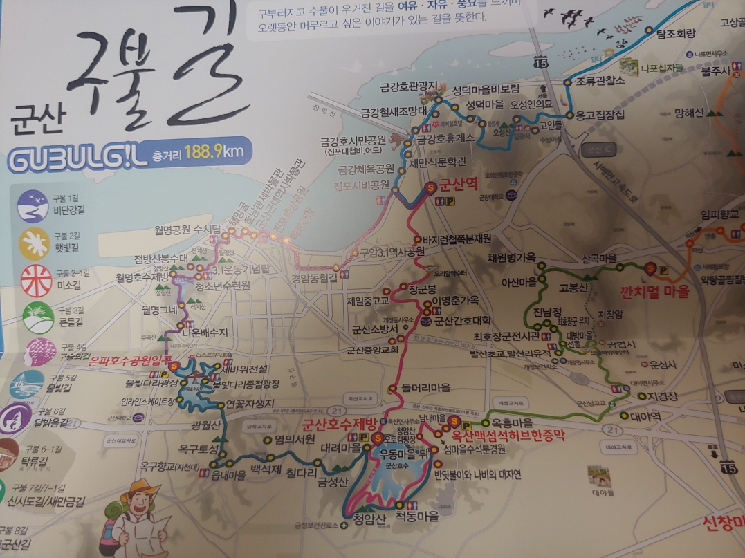 군산에도 걷는 길이 있었다. 총 거리가 188.9km 이니 며칠 잡고 걸어야 할 것 같다. 걷기를 좋아하는 사람이라면 완주에 도전해보는 것도 좋을 것이다.