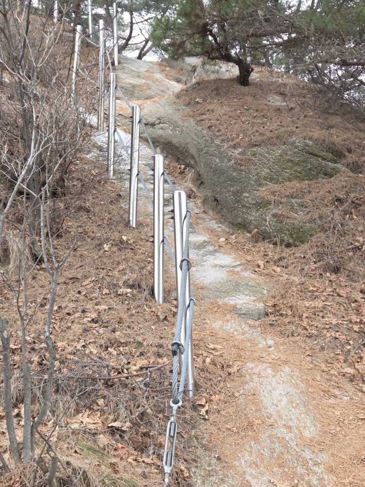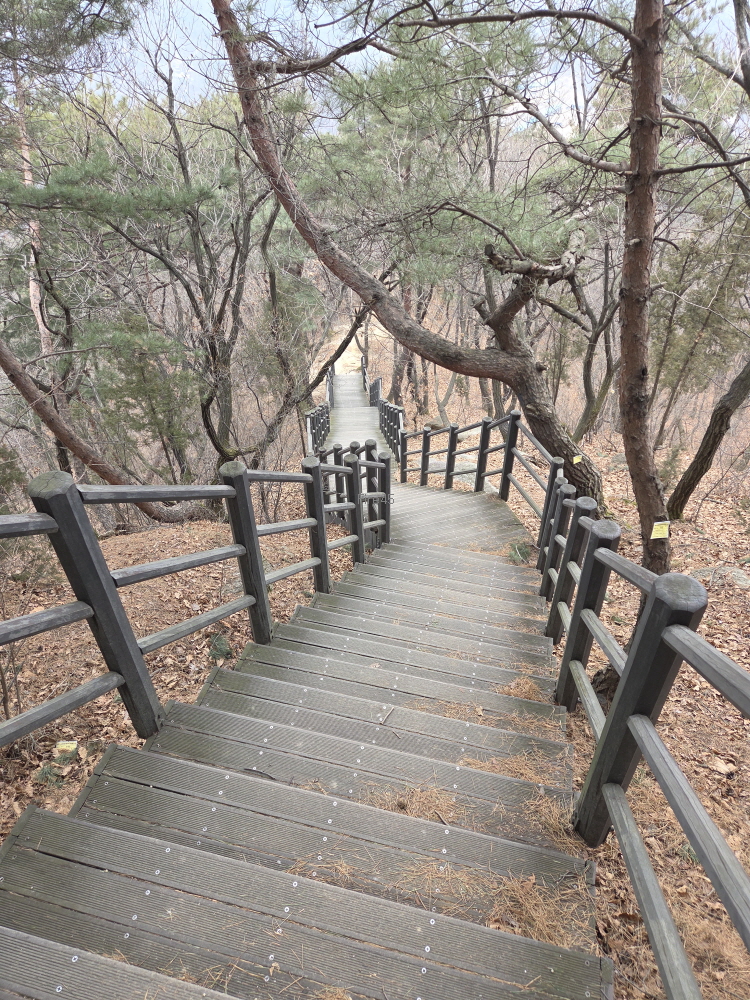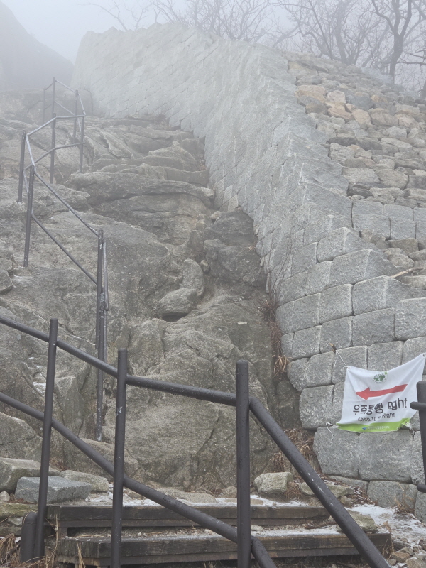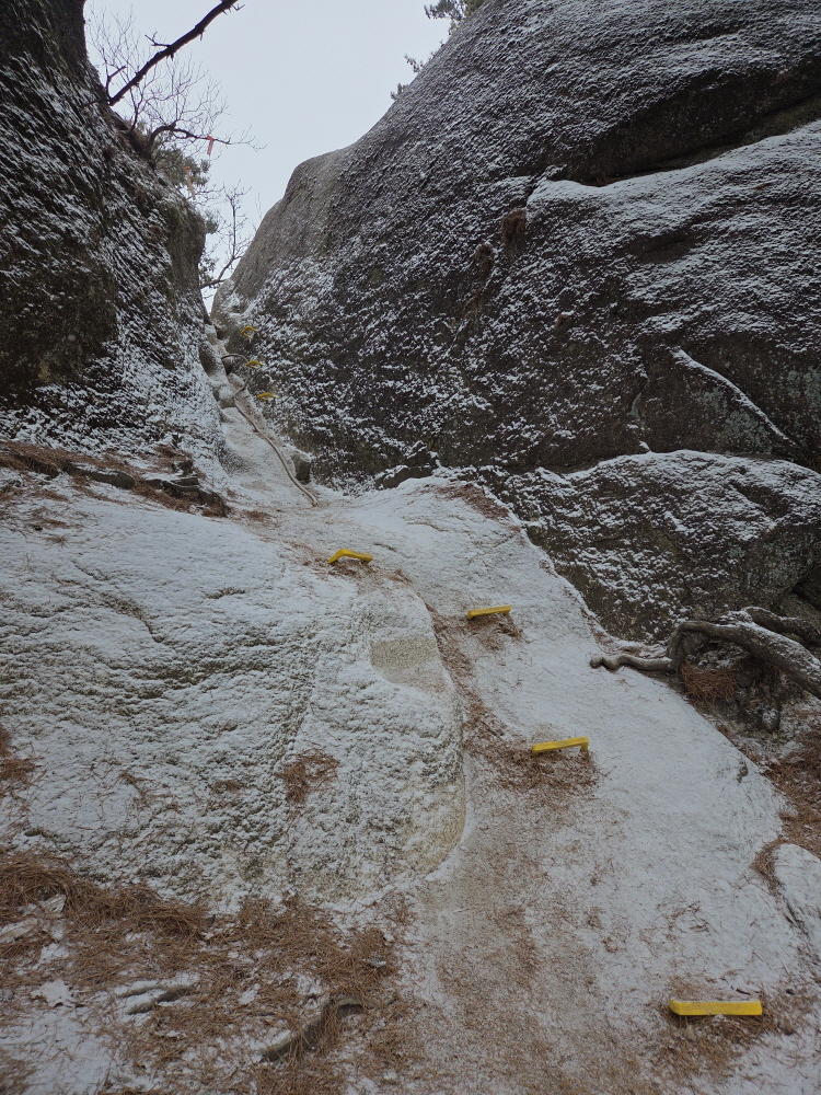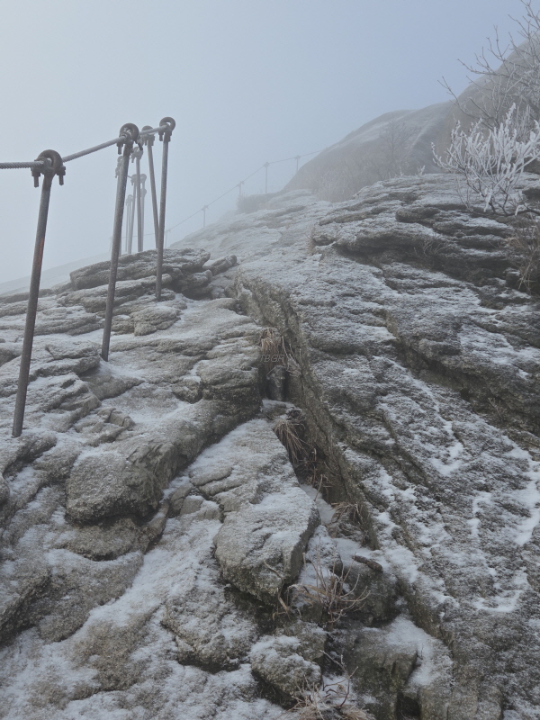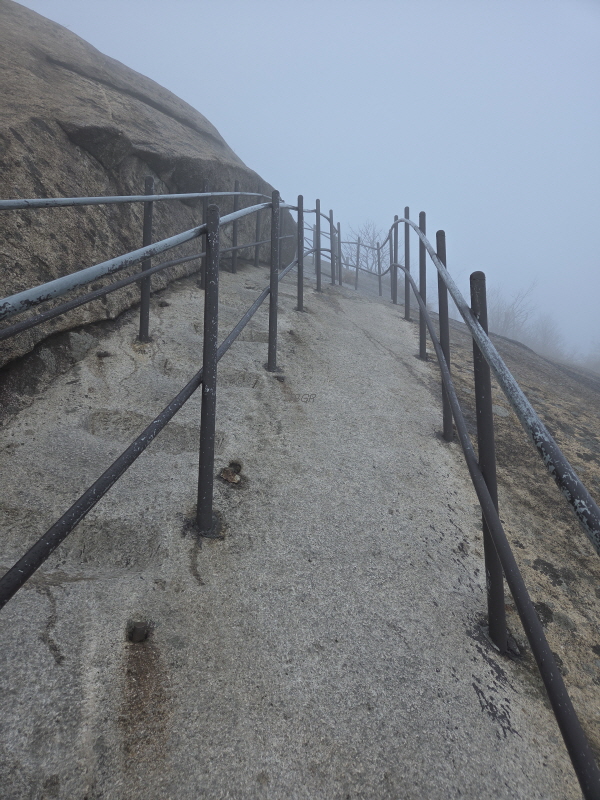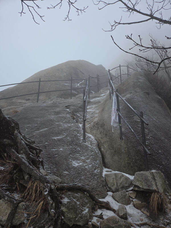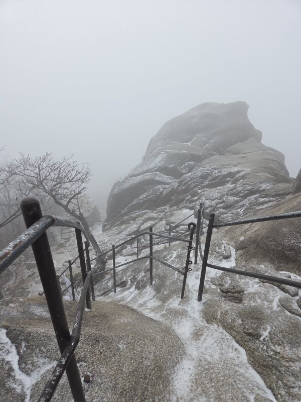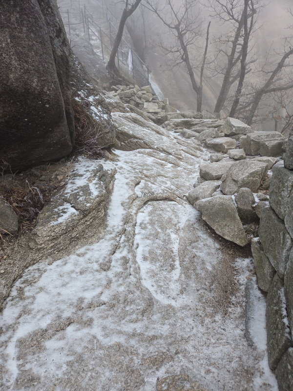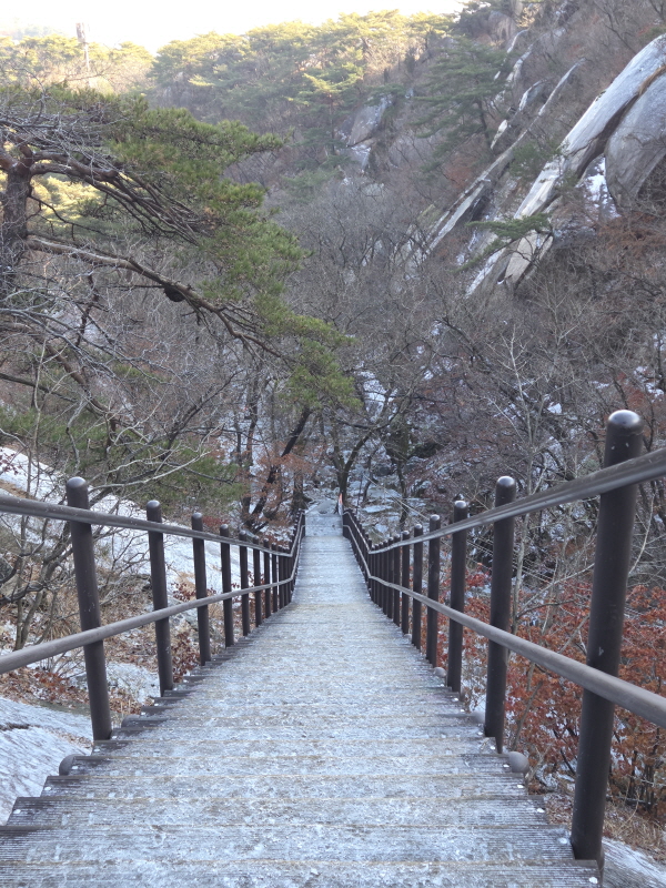 얼음이 있는 곳도 있었지만 난간이 있어서 아이젠 없이 내려올 수 있었다.