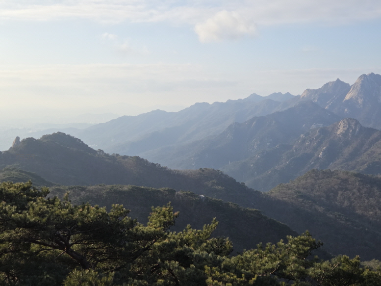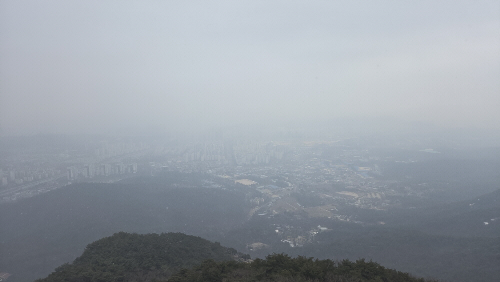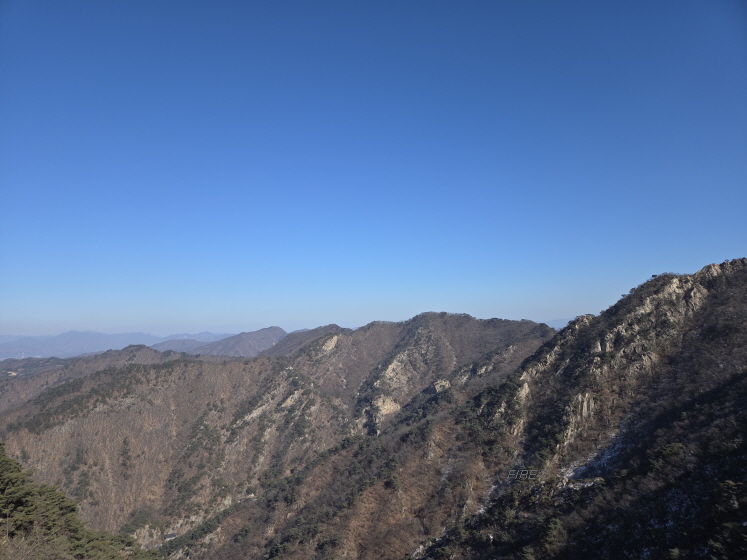저기는 어디인지... 수락산 정상이라고 하기에는 조금 멀고... 불암산 정상인가. 날씨도 흐리고, 눈도 내리고, 주변을 천천히 감상할 여유도 없이 정상으로 가는 데 집중했다.