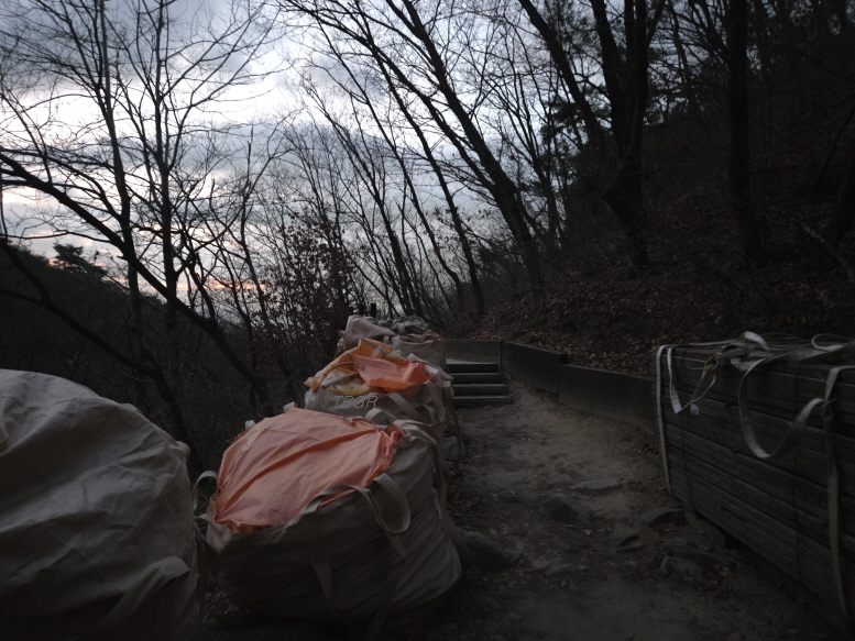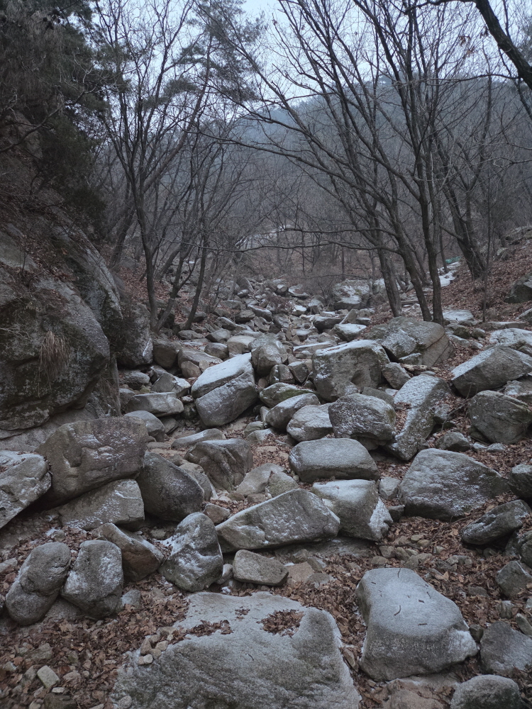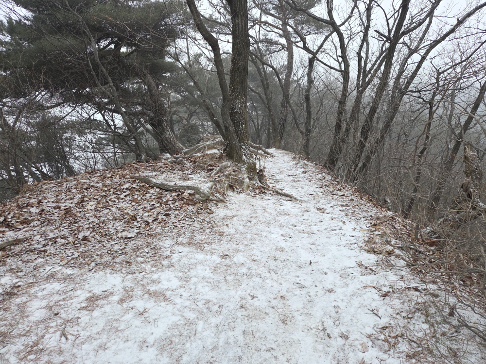 하산 시작 30분만에 넘어졌으니 미끄러운 길을 1시간 더 내려왔다. 조심조심 내려가다가 이미 늦은거 천천히 내려가기로 했다. 또 넘어질까봐 두렵기도 했다.