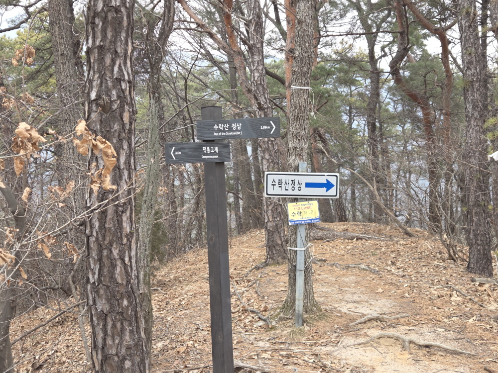 도솔봉 이정목을 지나서 수락산 정상으로 오는 길에는 등산객을 몇 명 만났다. 그런데 정상에는 나 혼자였다. 4시 30분이라서 그랬나. 겨울 산에서는 늦어도 오후 4시에는 하산을 시작해야 안전하다는 것을 알았다.