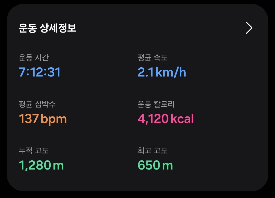 거리 : 15.65km, 소요시간 : 7시간 12분