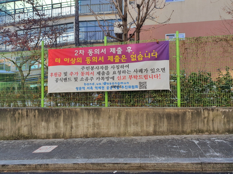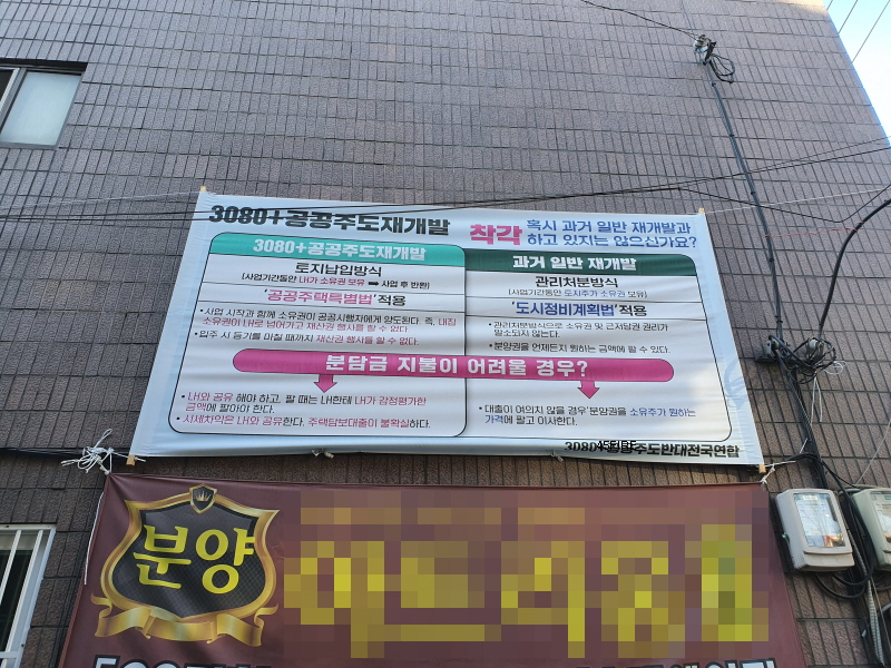 대부분이 공공주도 재개발에 반대하는 현수막이었는데, 여기는 요건 달성을 축하하는 현수막이 있었다.