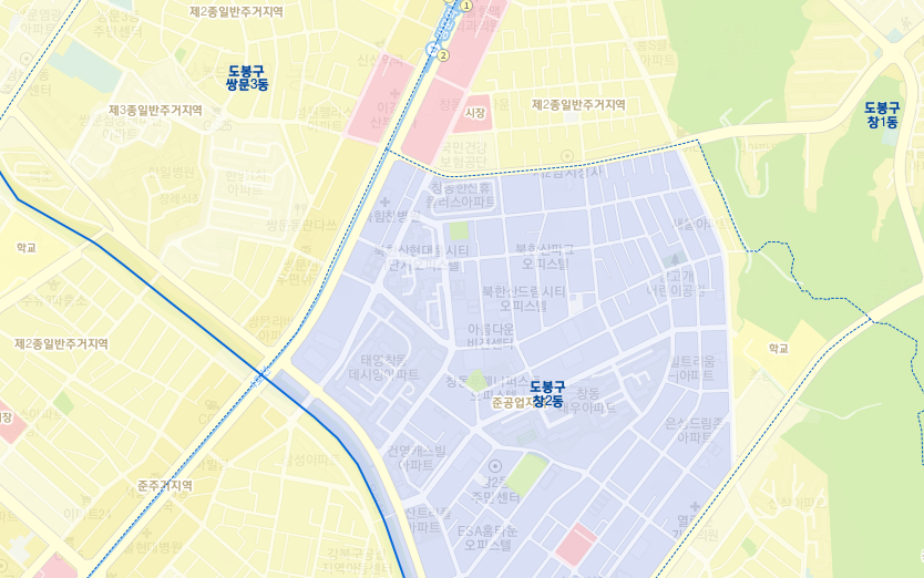 쌍문역에서 가깝지만 창동 674일대는 창2동에 속한다.