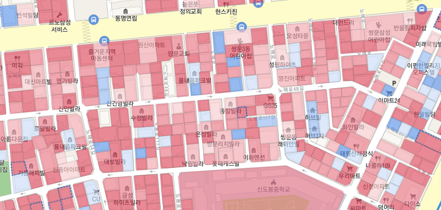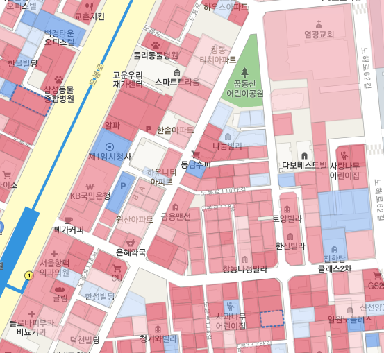 쌍문역 동측과 쌍문역 서측을 둘러봤을 때 서측이 더 노후된 느낌이었다. 쌍문역 동측 노후도를 보니 도로변에 있는 신축들 때문에 그렇게 느꼈던 것 같다.