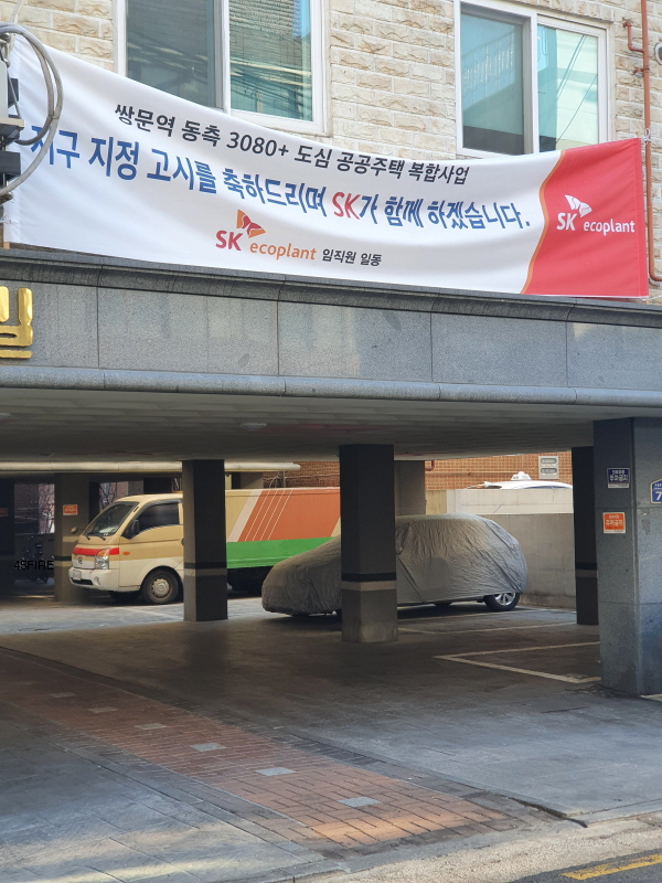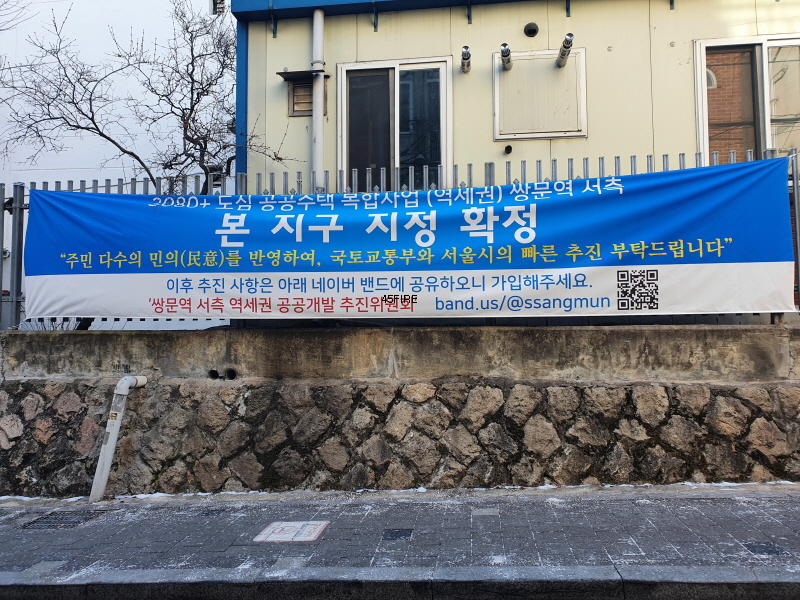 쌍문역 동측 3080+ 도심 공공주택 복합사업 지구 지정 고시를 축하하는 현수막이 보였다.