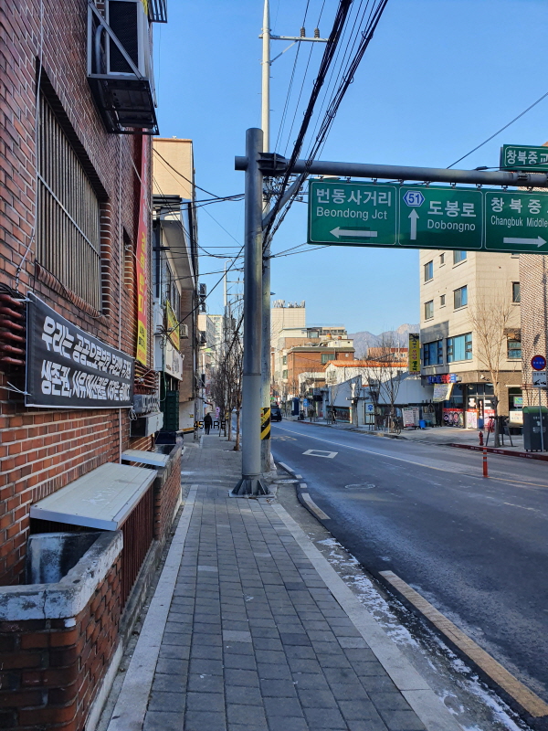 여기는 쌍문역 서측의 아래쪽 경계로 기억한다. 앞쪽은 쌍문역 서측에서 제외되는 곳이고 사진상 안 보이는 왼쪽 뒤가 쌍문역 서측일 것이다. 확실하지는 않지만 아마 맞을 것이다. 로드뷰로 다시 확인하려고 했는데 속도가 느려져서 생략한다.